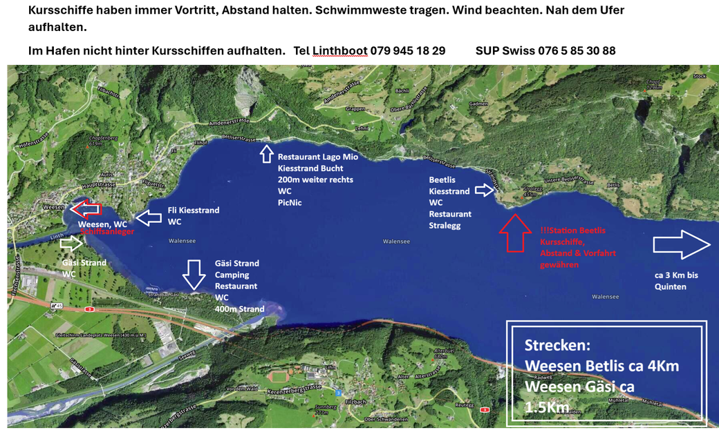 Ihr könnt dann mit den Kayaks auf dem Walensee und dem Linthkanal fahren und diese dann in Schmerikon im ZürichSee abgeben.