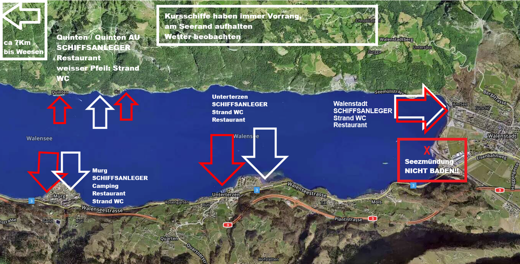 Unsere Kayaks könnt ihr ab Weesen, dem Gäsi Zeltplatz,